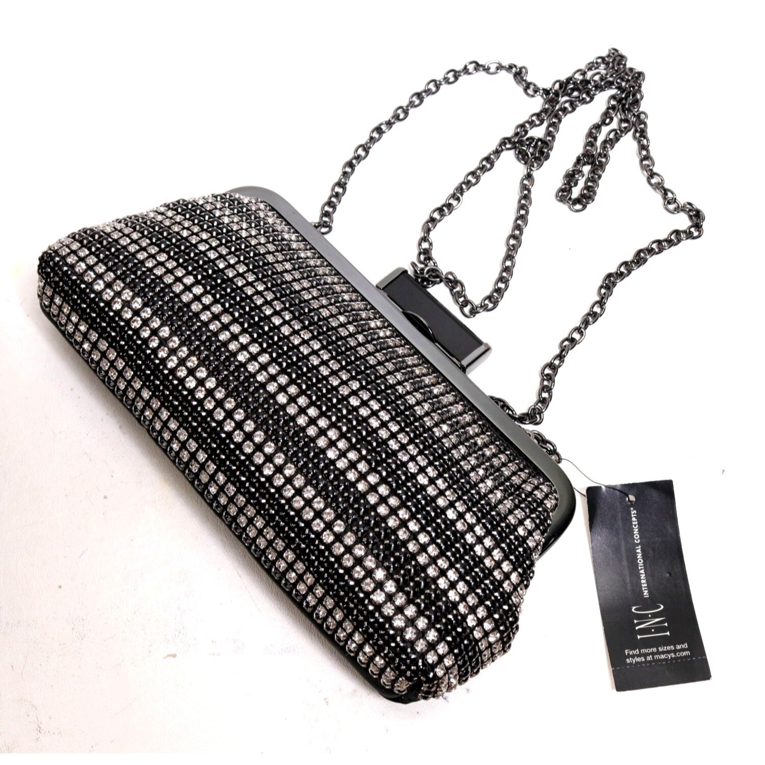 Inc Rhinestone Crossbody Handbag S Silver Black Blink Evening Purse Clutch Bag