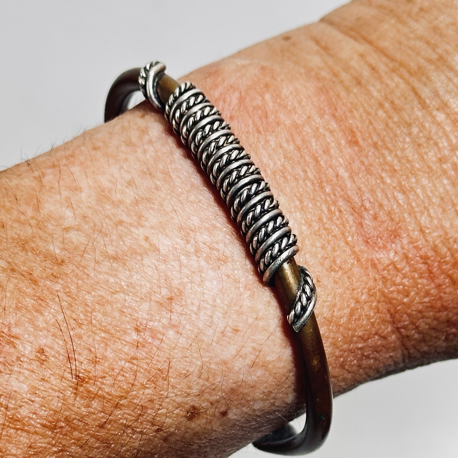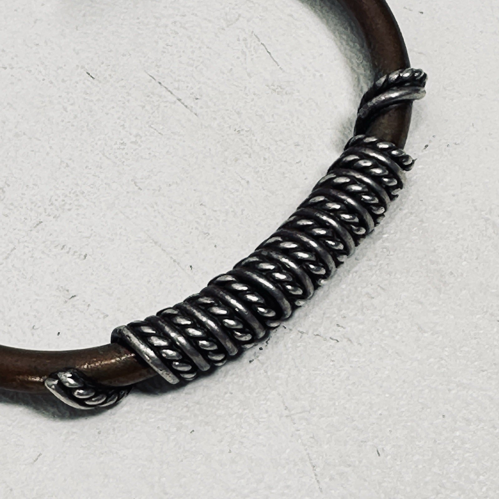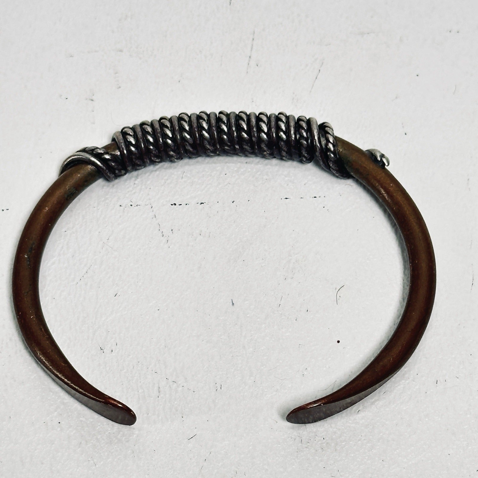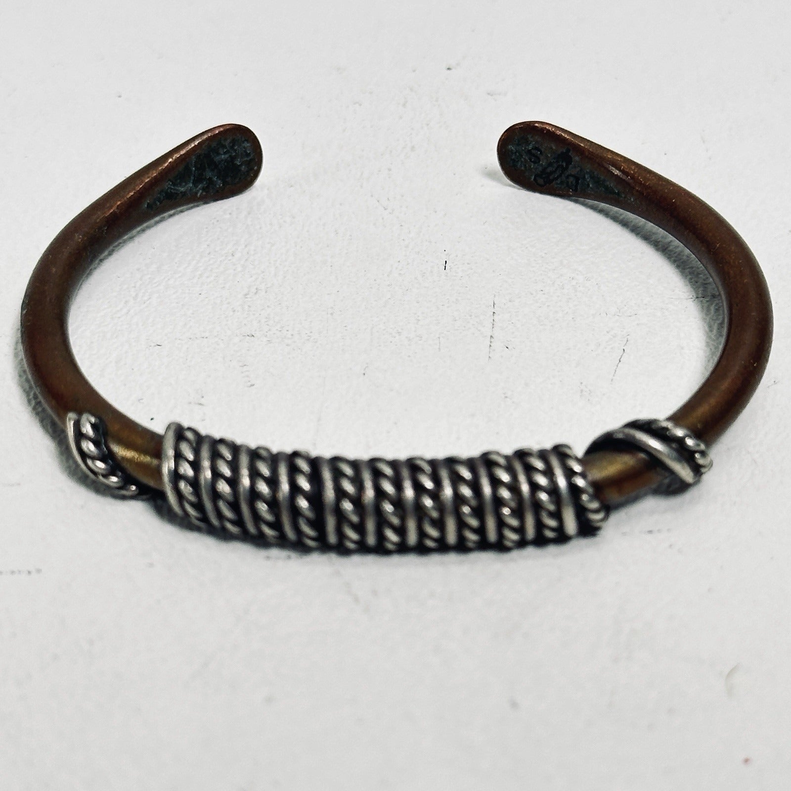 Vtg Copper Cuff  Bracelet Brass Wrap Wire Adjust 2.5 in Signed Native American