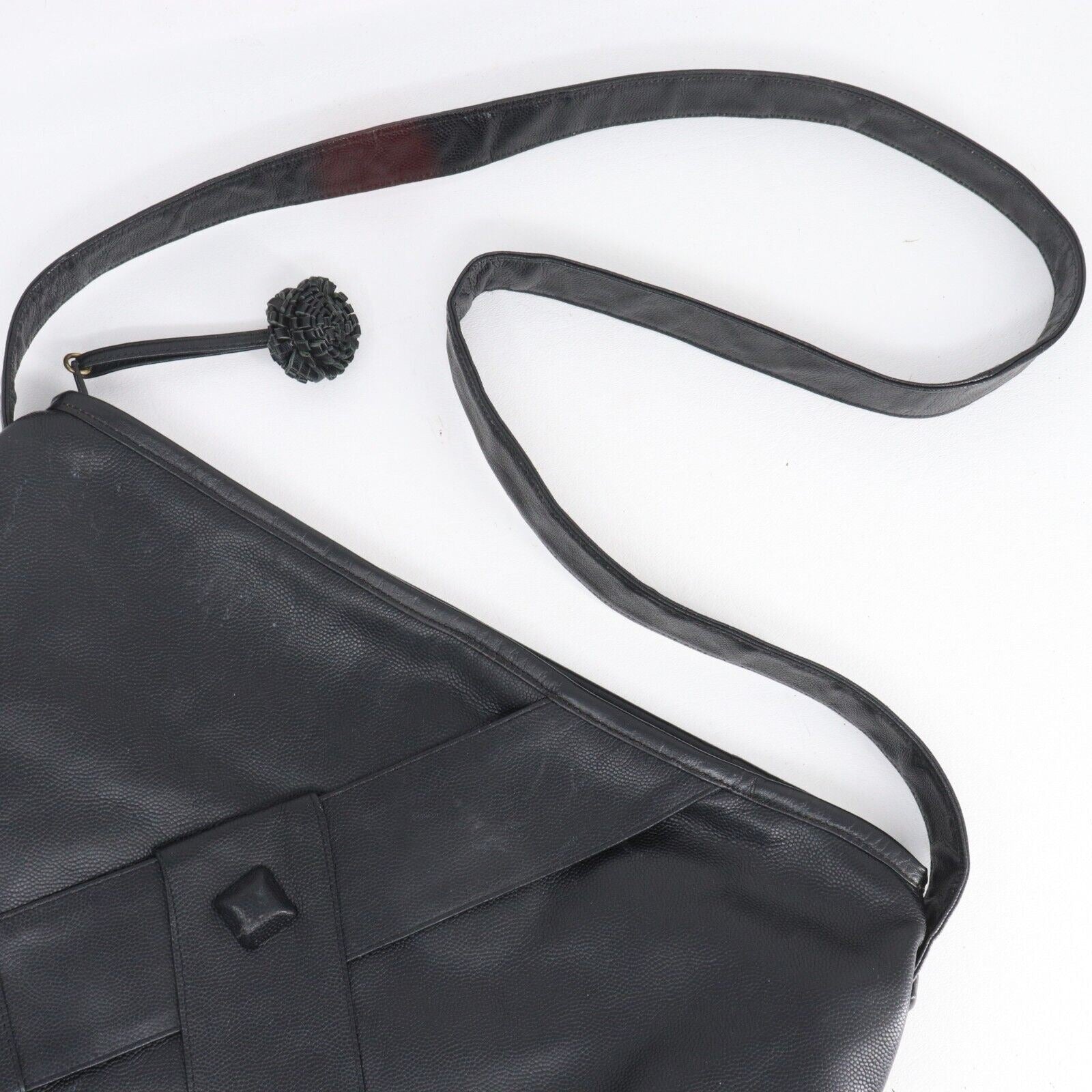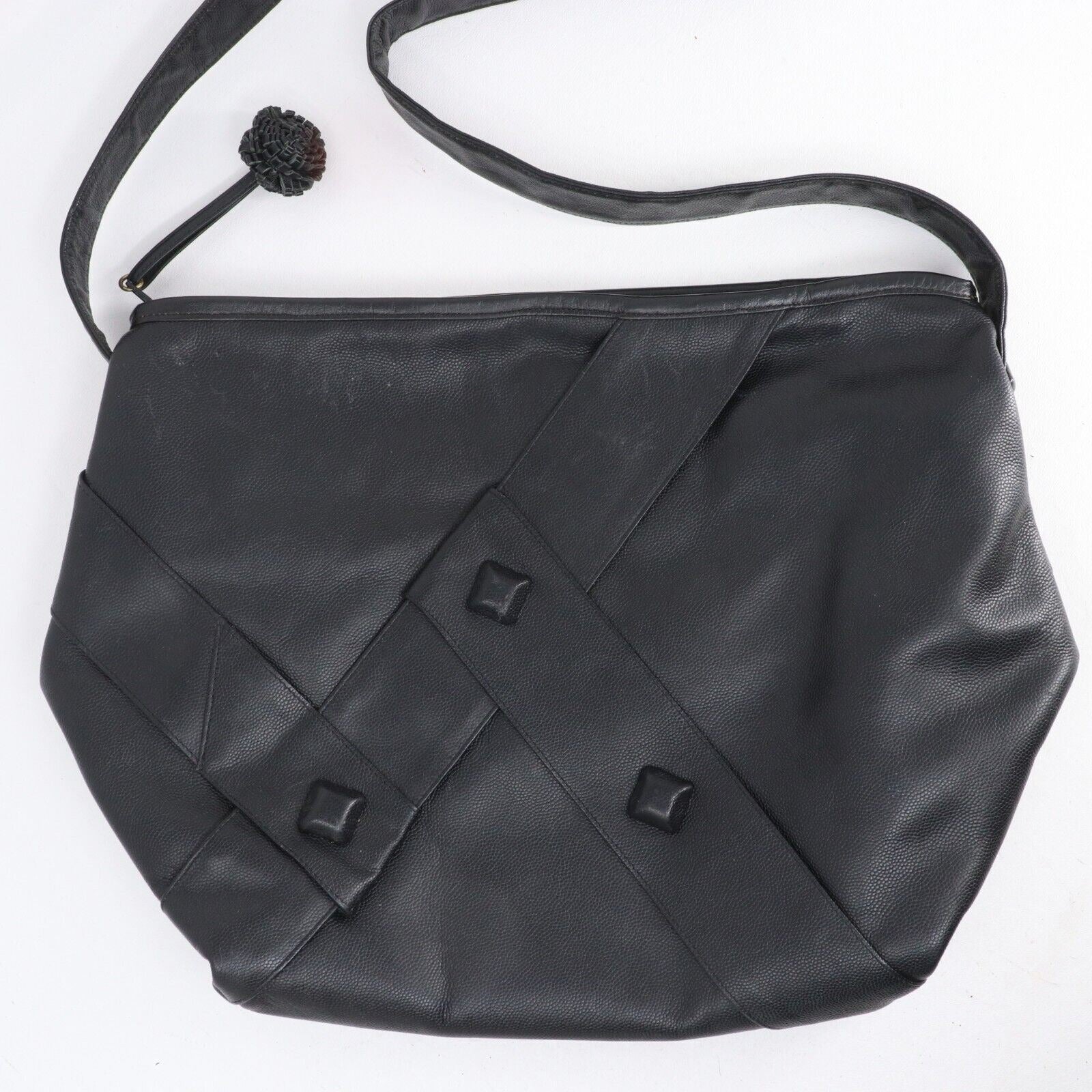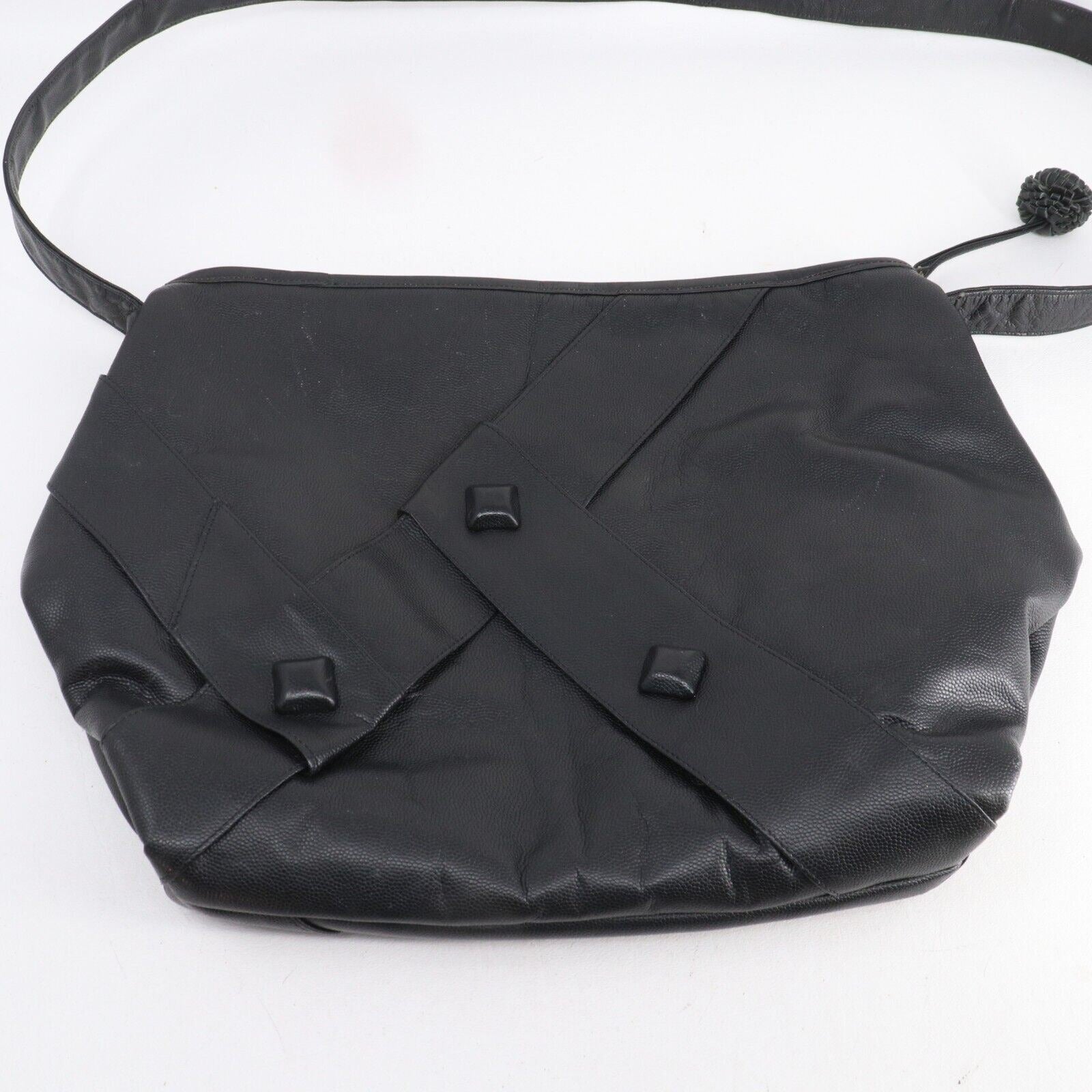 Vtg Sharif Handbag M Black Leather Square Bead Lined Retro Purse Shoulder Bag