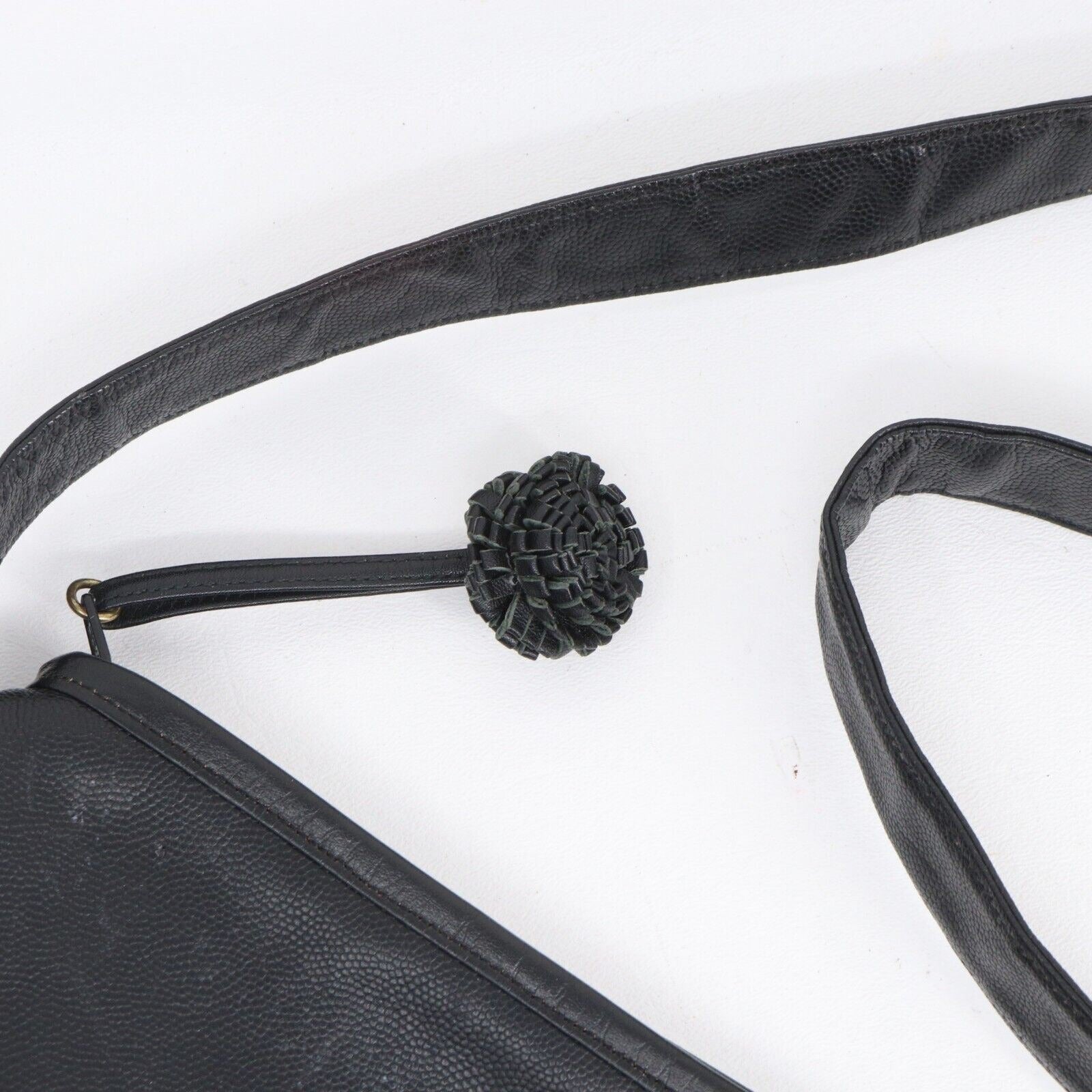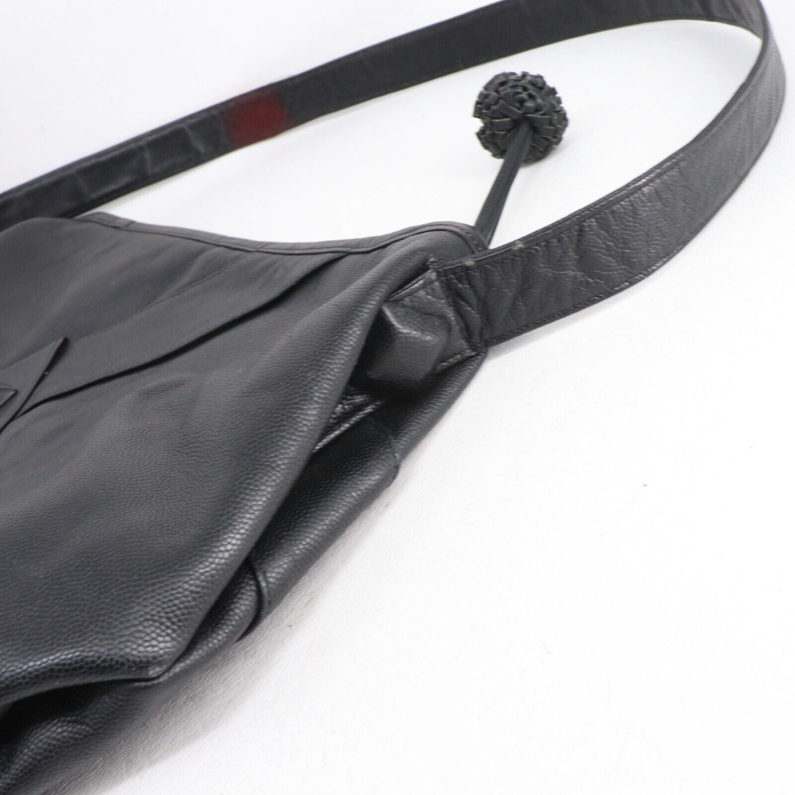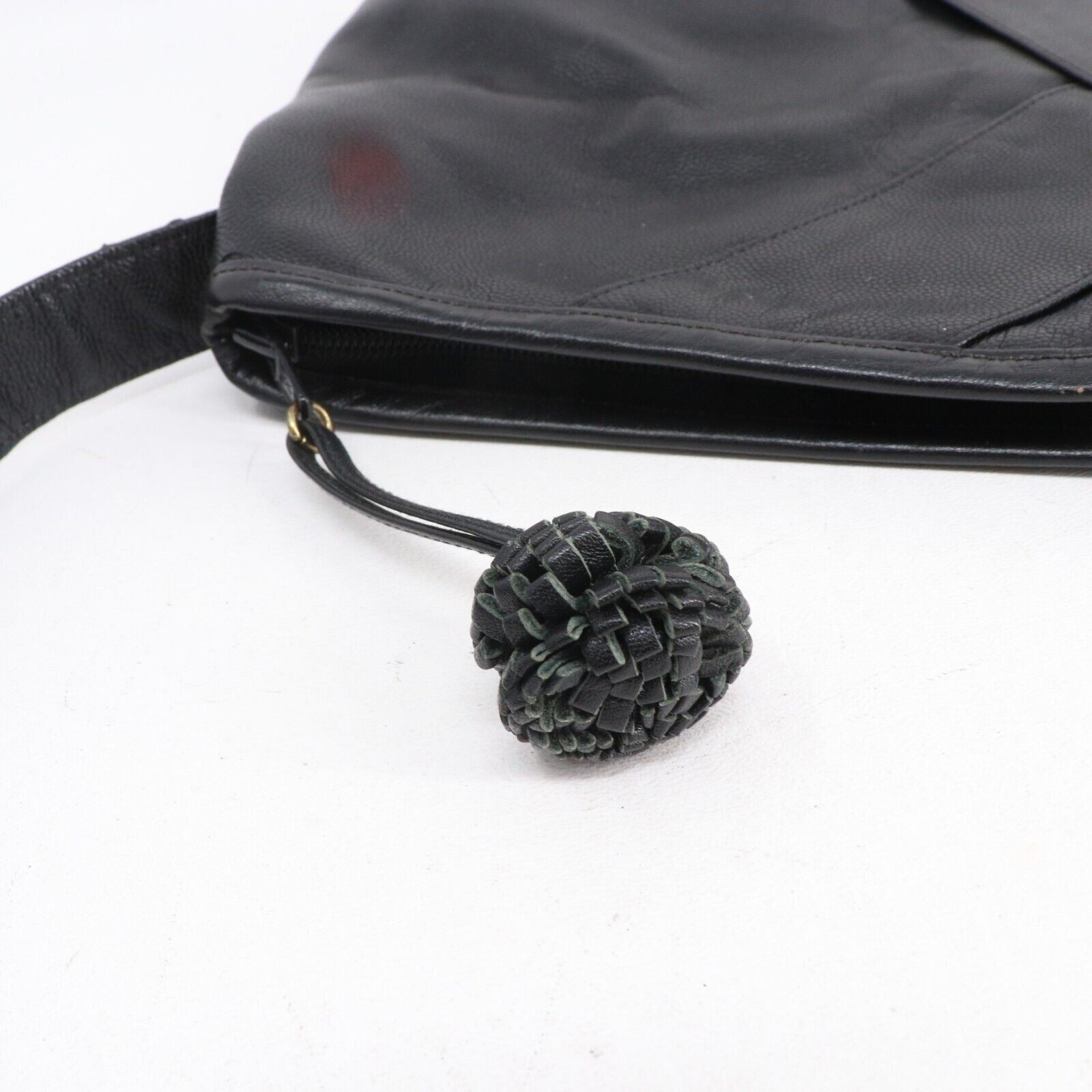Vtg Sharif Handbag M Black Leather Square Bead Lined Retro Purse Shoulder Bag